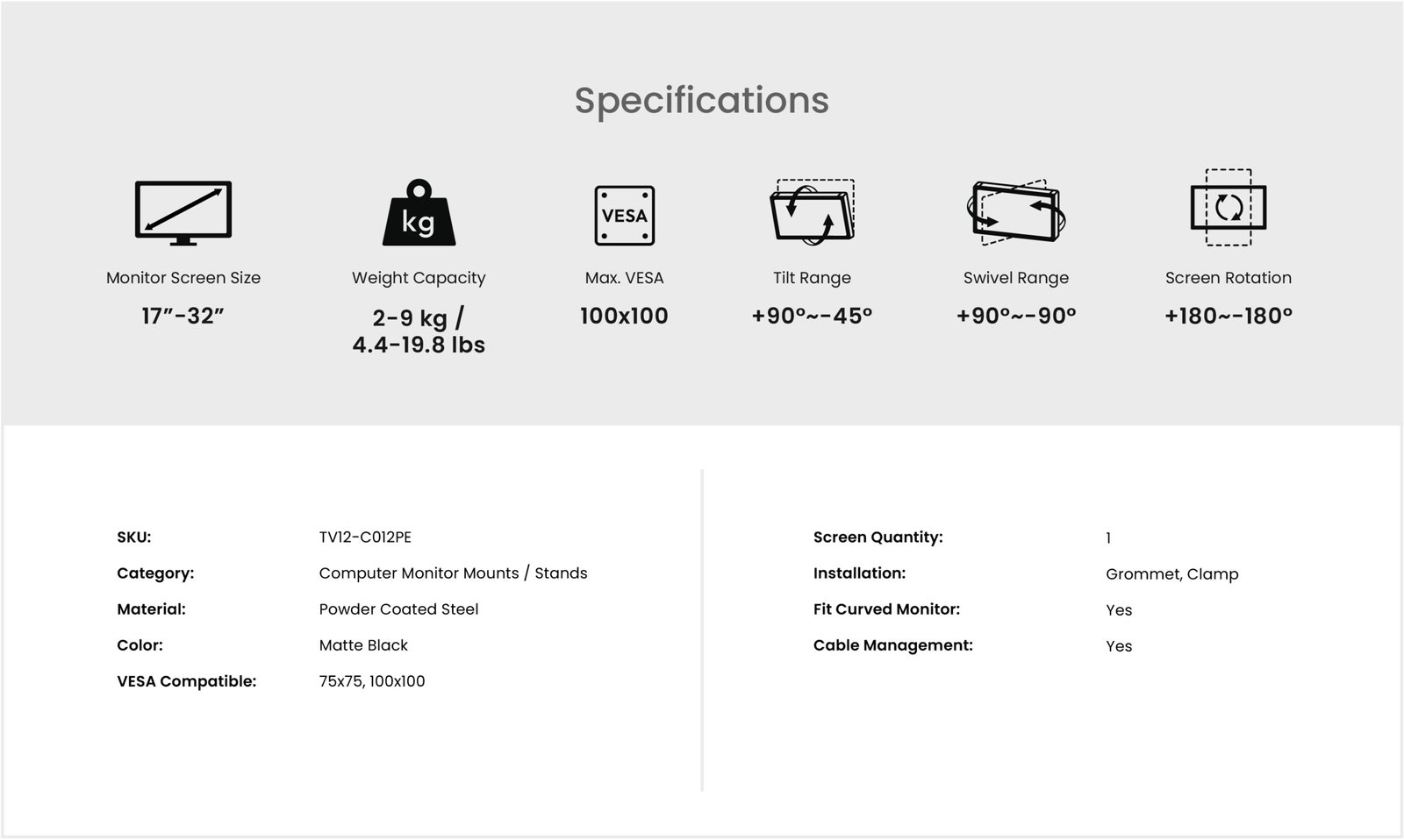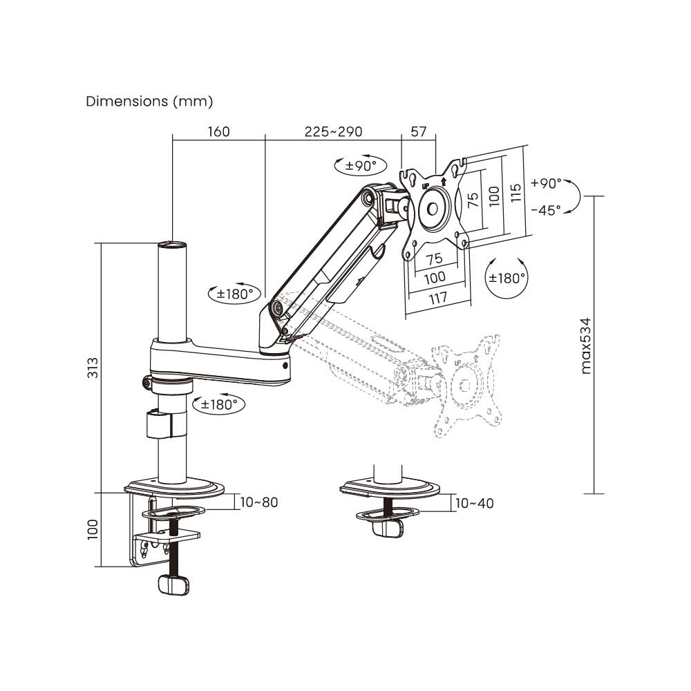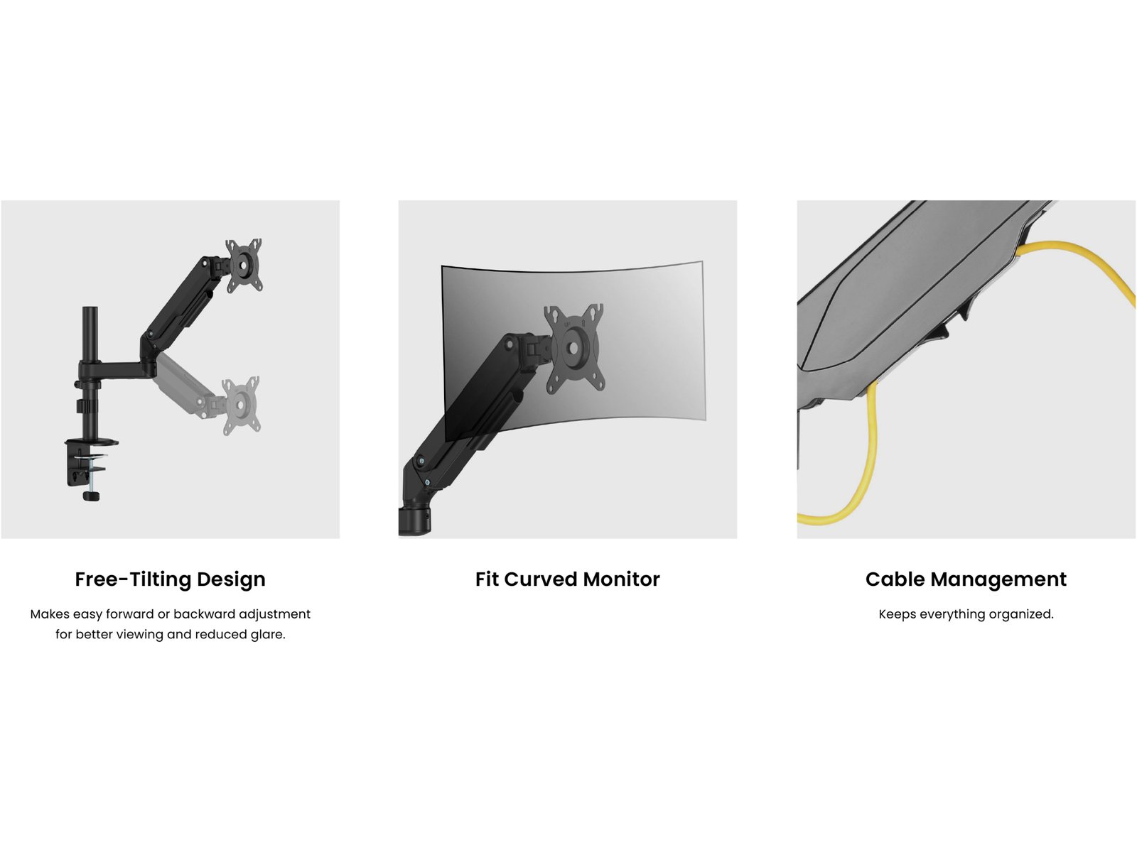 - Gas spring perfectly counterbalances the weight of your screen to help effortless adjustment for viewing comfort.