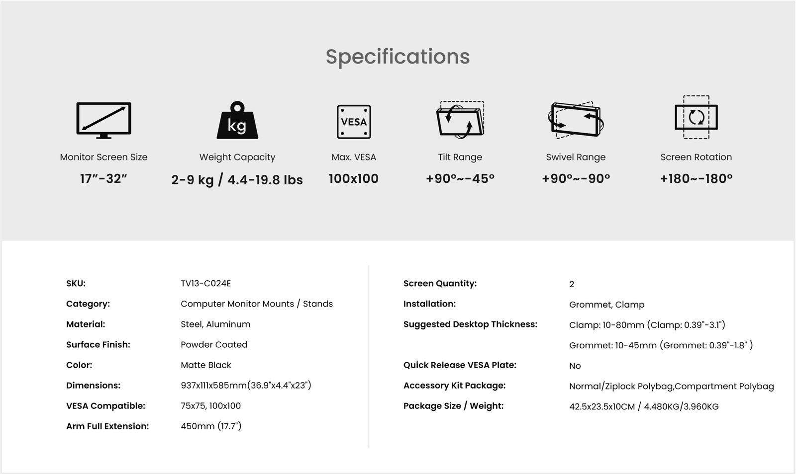 Product Detail: Dual Counterbalance Monitor Mount For 17″-32″ Monitors