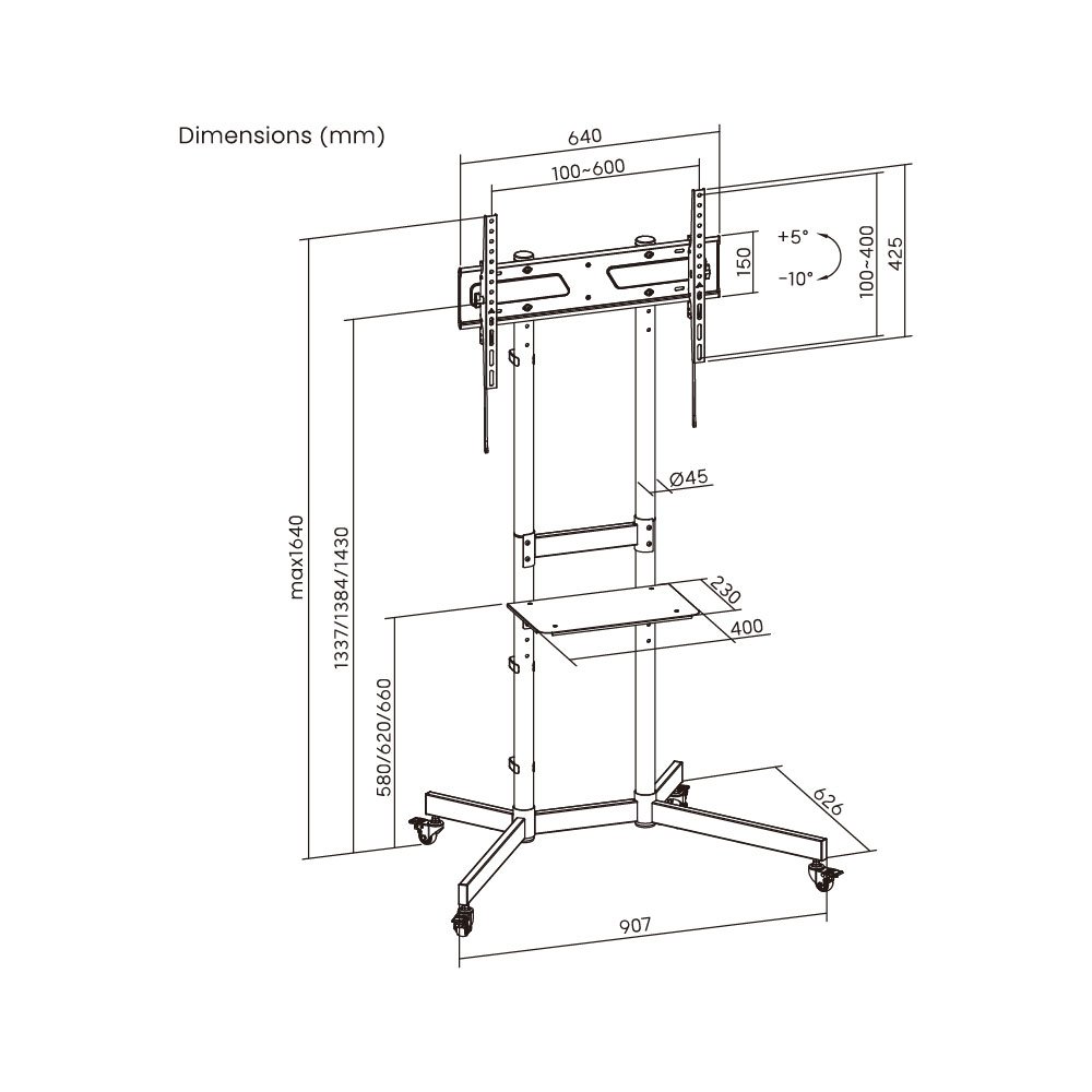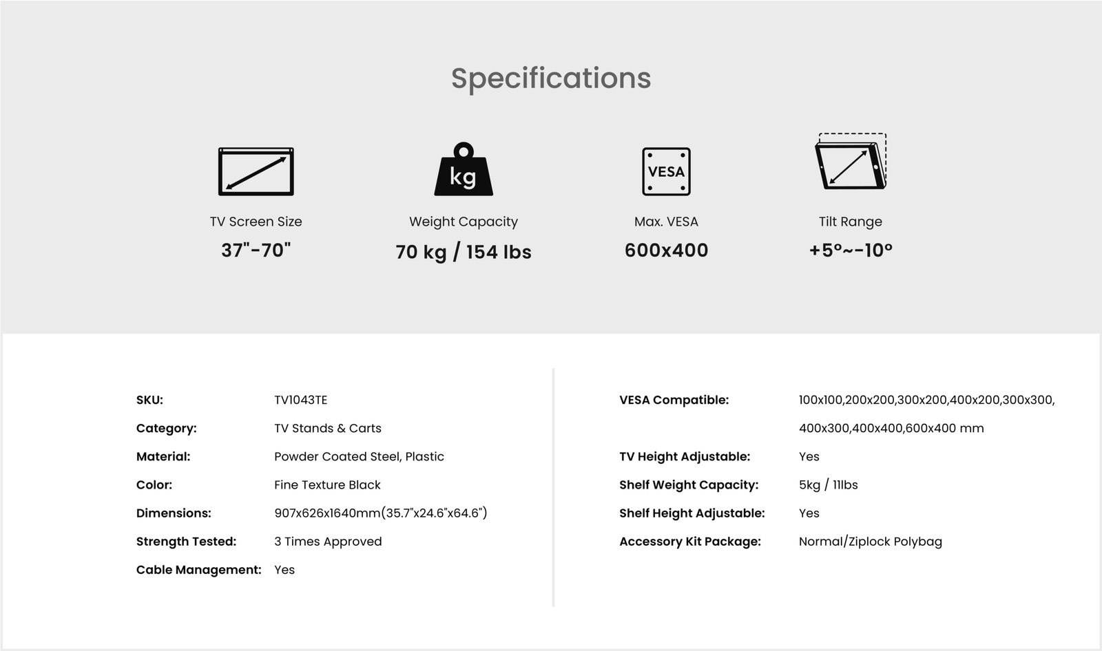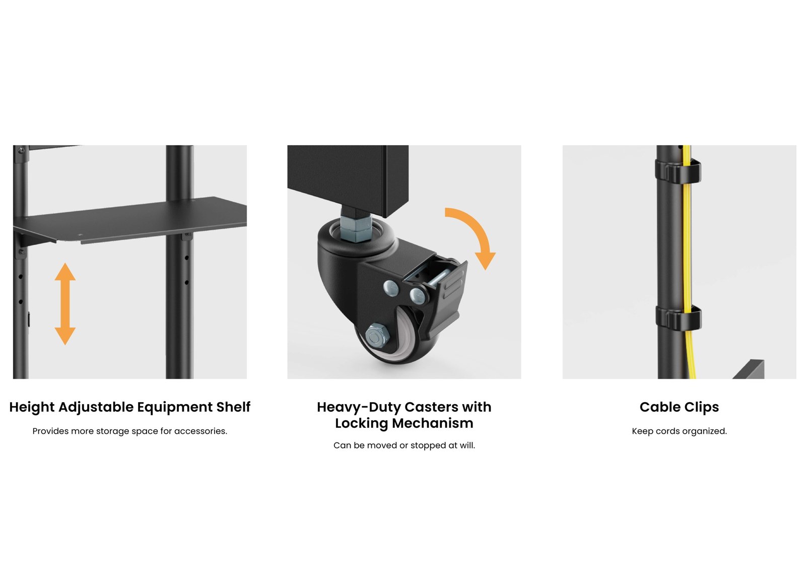 - VESA compatible: 100×100, 200×200, 300×200, 400×200, 300×300, 400×300, 400×400, 600x400mm