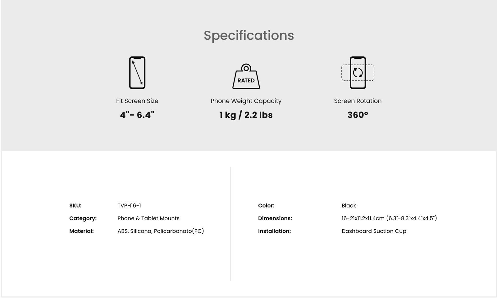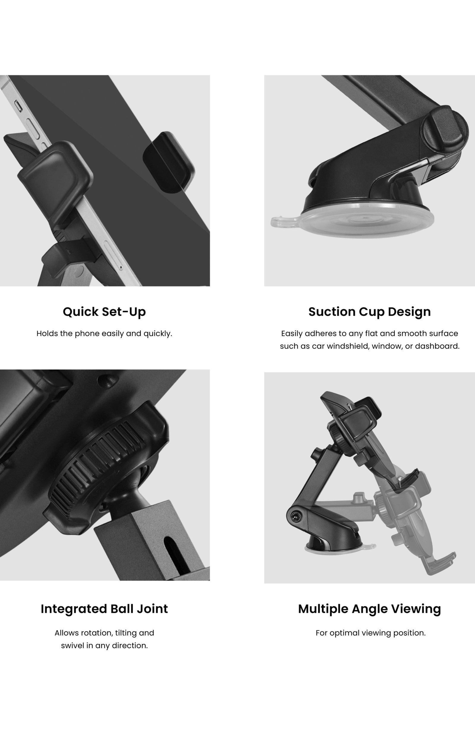 - Suction Cup Design: easily adheres to any flat and smooth surface such as car windshield, window, or dashboard