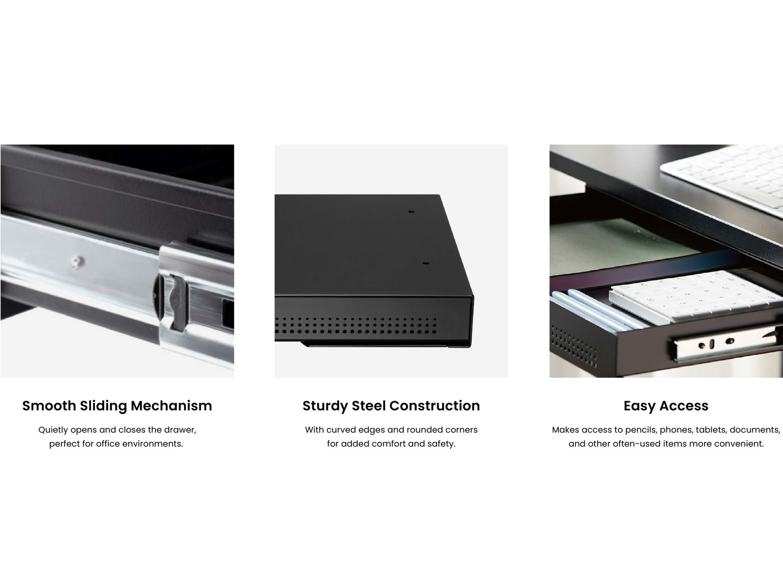 3. Smooth Sliding Mechanism: quietly opens and closes the drawer, perfect for office environments.